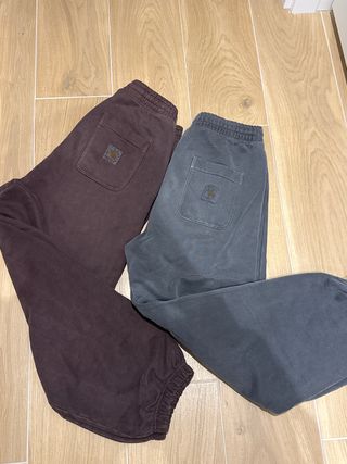 Pantalones de algodón Carhartt.AW2025 - Hechos 100% de algodón. - Color marrón. - Color gris. ajuste ancho, talla S son de esta temporada nuevos , no usados. precio unidad en web 139eu