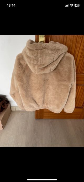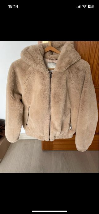 Abrigo de pelo con capucha. - Cierre de cremallera. - Dos bolsillos laterales con cremallera. - Puños y bajo elásticos.