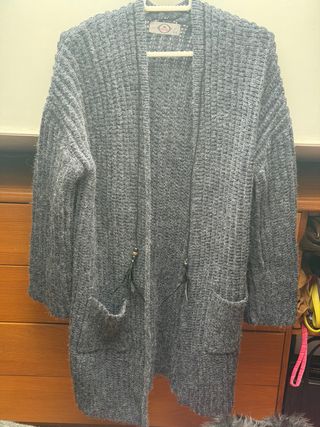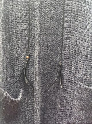 Chaqueta larga de punto de tacto suave y diseño abierto. Perfecta para añadir una capa extra de abrigo. - Tejido grueso con textura. - Dos bolsillos delanteros. - Detalle de cordón con abalorios y flecos.