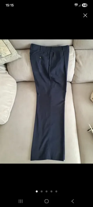 Pantalón de vestir para caballero en tono azul marino. Un básico elegante para cualquier ocasión. Medidas cintura 45 y largo 105 cm - Corte clásico. - Cierre de botón y cremallera. - Bolsillos delanteros y traseros.