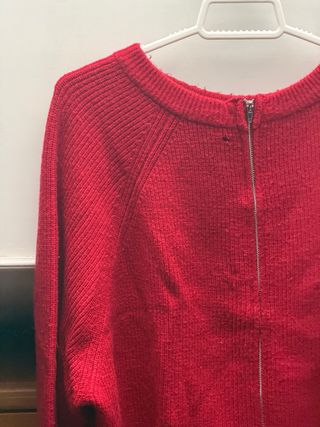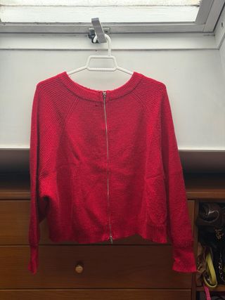 Jersey de punto en color rojo con cierre de cremallera. Opción de poner la cremallera en el lado de adelante o de atrás. - Diseño de manga larga. - Cuello redondo. - Cremallera plateada.