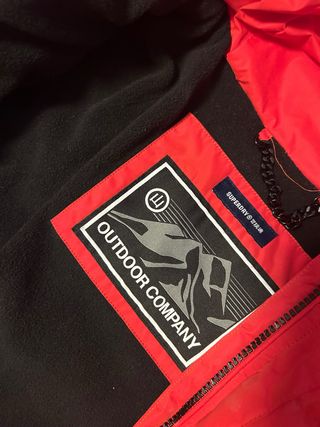Abrigo de la marca Superdry con un diseño moderno. - Exterior en color rojo vibrante. - Interior forrado en tejido negro suave. - Detalle de etiqueta con logo Outdoor Company.