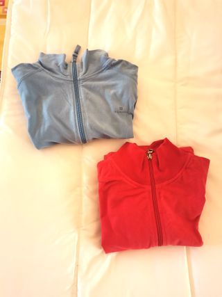 Conjunto de dos chaquetas deportivas de algodón con bolsillos. - Chaqueta azul. - Chaqueta roja. 3 eur/unidad