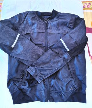 Chaqueta deportiva Lefties con un diseño moderno y estampado geométrico. - Cremallera frontal. - Bolsillos laterales con cremallera. - Puños y cintura elásticos. - Detalles reflectantes en las mangas. - Tejido ligero y transpirable.