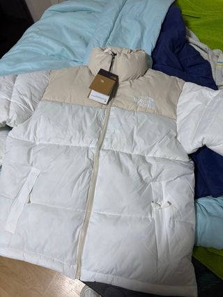Chaqueta acolchada de The North Face con un diseño bicolor. -Parte superior en color beige. - Parte inferior y mangas en blanco. - Cuello alto. - Cierre de cremallera frontal. Hago entrega en mano en El Ejido (Almeria) pero tambien acepto envios