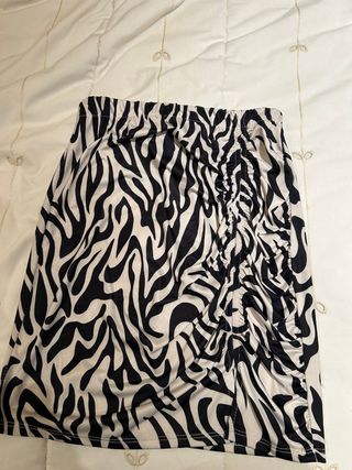 Falda corta con estampado de cebra y detalle de fruncido lateral. - Diseño llamativo. - Cintura elástica. - Tejido ligero y cómodo.
