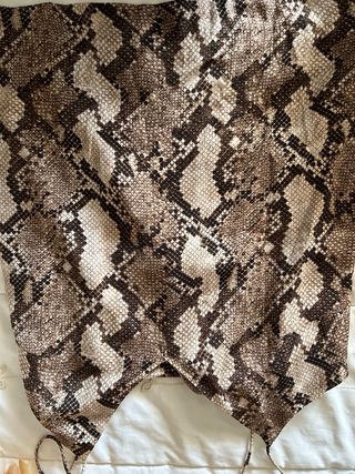 Prenda de ropa en tono beige, confeccionada en un tejido ligero y con textura. - Material suave al tacto. - Diseño con pliegues y costuras visibles.