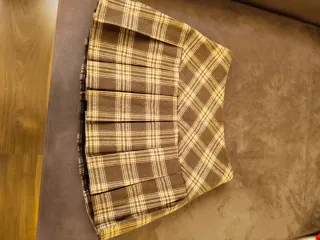 Minifalda con estampado de cuadros en tonos beige y marrón. Presenta un diseño plisado y detalles de botones en la cintura. - Estampado de cuadros - Diseño plisado - Detalles de botones