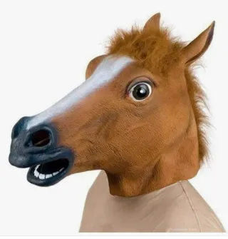 Accesorio divertido para fiestas o disfraces. - Diseño realista de cabeza de caballo. - Color marrón con detalle blanco en la frente. - Talla única que se adapta a la mayoría.