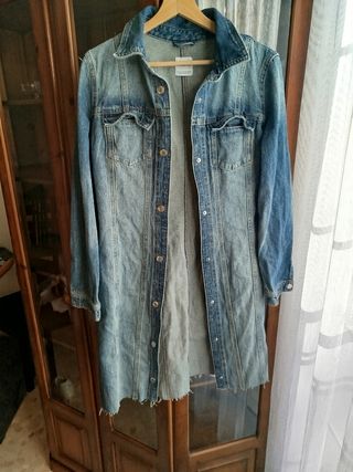 Chaqueta vaquera larga de Bershka. Un básico versátil para cualquier armario. - Diseño de corte recto. - Cierre de botones. - Bolsillos en el pecho. - Bajo deshilachado.
