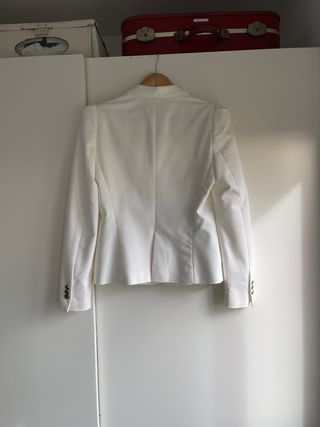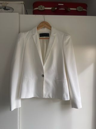 Elegante blazer blanco de Zara Basic. - Corte clásico y favorecedor. - Un botón frontal. - Bolsillos de solapa.