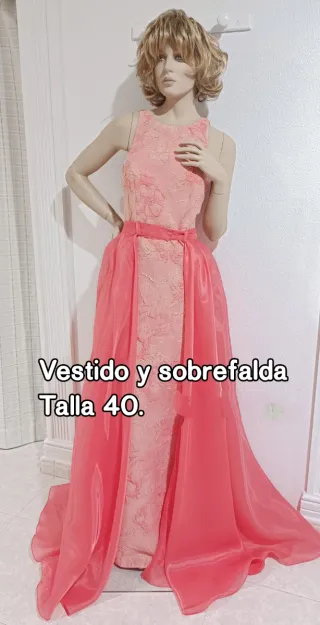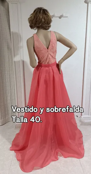 Elegante vestido con sobrefalda para eventos. Vestido de brocado, estrecho, con corte detrás y escote de pico - Diseño de brocado en el vestido. - Sobrefalda vaporosa La falda se quita, va cogida con el cinturón