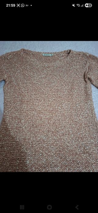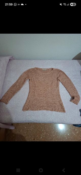 Jersey de punto grueso rosa jaspeado. Ideal para el día a dia en invierno. Medidas: 46 cms de axila a axila y 69cms de largo. - Tejido de punto. - Manga larga. - Corte acampanado.