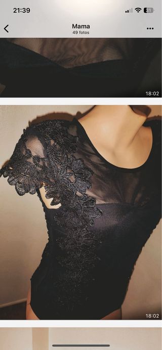 Jersey elegante con detalles de encaje. - Manga corta con encaje. - Escote transparente con encaje. - Diseño ajustado.