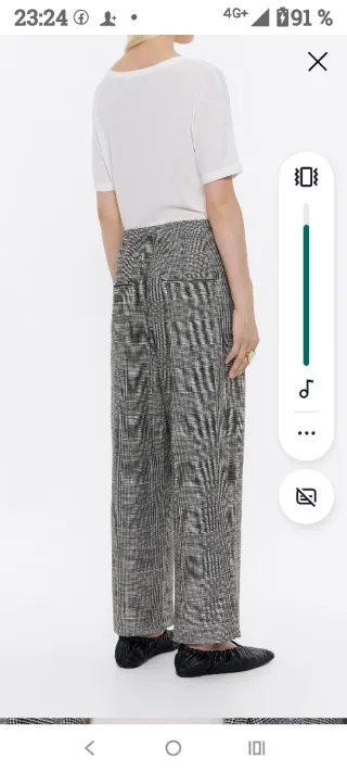 Pantalón de Zara en color beige. Diseño moderno y versátil. - Tejido elástico y cómodo. - Costuras verticales. - Abertura en el bajo.