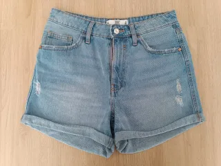 Shorts vaqueros de tiro alto con un diseño moderno y cómodo. - Lavado desgastado. - Detalle de rotos. - Dobladillo en el bajo.
