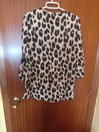 Blusa con estampado de leopardo. - Diseño con cuello en V. - Mangas 3/4 con volantes. - Bajo con acabado curvo.