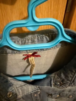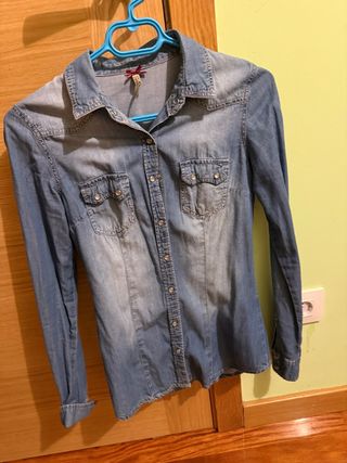 Camisa vaquera de corte entallado. - Diseño clásico con botones. - Dos bolsillos en el pecho. - Cuello camisero.