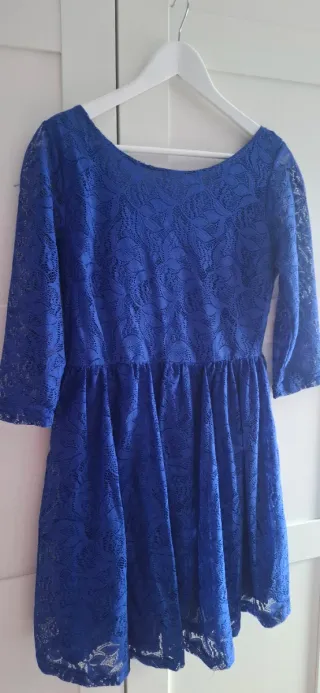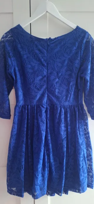 Vestido de manga tres cuartos con un bonito diseño de encaje. - Escote redondo. - Cintura marcada, cremallera en la espalda - Falda con vuelo y con forro