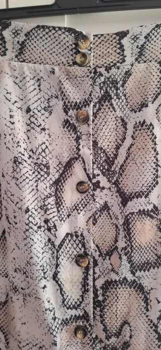 Falda midi con estampado de serpiente de Sophie Atelier. Presenta un diseño con botones en la parte delantera. - Estampado de serpiente. - Cierre de botones., cintura con elástico trasero