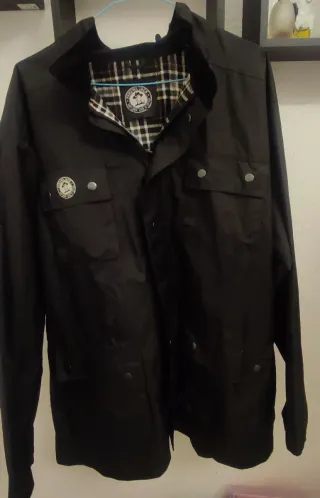 Chaqueta de la marca Panama Jack en color negro. Presenta un forro interior a cuadros. - Cierre de botones a presión. - Dos bolsillos superiores con solapa y botón. - Dos bolsillos inferiores. - Detalle de logo circular en el pecho izquierdo.