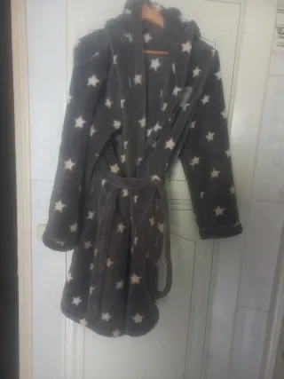 Bata suave y cómoda para estar en casa. - Diseño con estampado de estrellas. - Cinturón para ajustar. - Capucha integrada.
