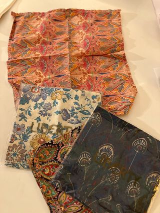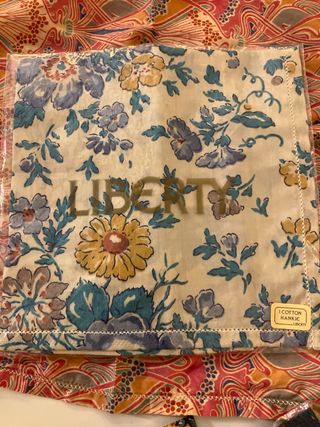 Conjunto de 6 pañuelos con el distintivo estampado de Liberty. - Diseño floral y paisley.dos de ellosen su envoltorio original - precio de los 6/55 Sueltos a 15