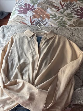Camisa elegante de la marca Scalpers en color beige. Su diseño fluido la hace muy versátil. - Tejido satinado con un ligero brillo. - Cuello camisero clásico. - Cierre de botones frontales.