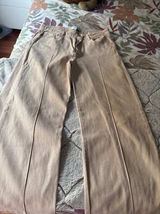 Pantalón ancho de la marca Scalpers en color beige. Diseño moderno y cómodo. - Pierna ancha. - Cintura alta. - Bolsillos delanteros.