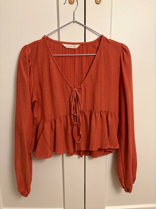 Blusa de manga larga. Se abrocha con un lazo por delante Esta como nueva, sin uso