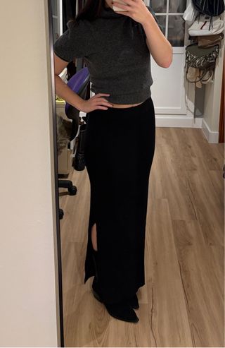 falda larga de punto esta nueva, con la etiqueta es una m de mango teen, equivale a una xs-s normal tiene una abertura a un lado de la pierna la cintura es elástica mide unos 93cm de largo