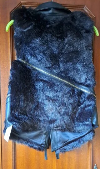 Chaleco negro piel y pelo