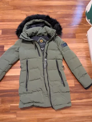 Parka de invierno Superdry en color verde militar, con capucha y detalles modernos. Usado 3 veces. Nuevo cuesta el triple.... No hago envíos x Correos - Diseño acolchado. - Cierre de cremallera doble - Bolsillos frontales con cremallera. - Puños ajustados.