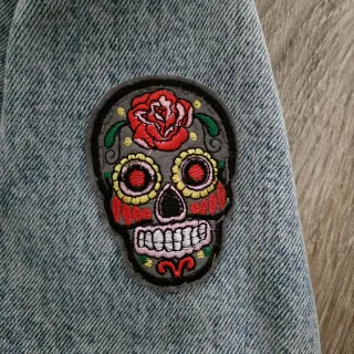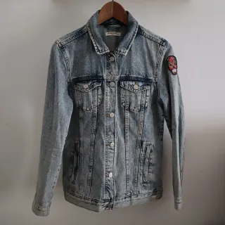 Cazadora vaquera denim con un diseño moderno y desgastado. - Parche decorativo Catrina en la manga (se puede quitar) - Cierre de botones metálicos. - Bolsillos en el pecho.