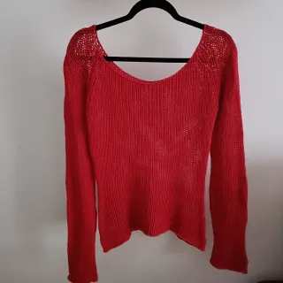 Jersey de punto calado en color rojo. - Diseño con escote. - Manga larga. - Tejido ligero.