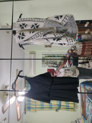 Lote de ropa de mujer. - Prenda superior de punto con estampado geométrico. - Vestido negro con tirantes. Son 8 prendas