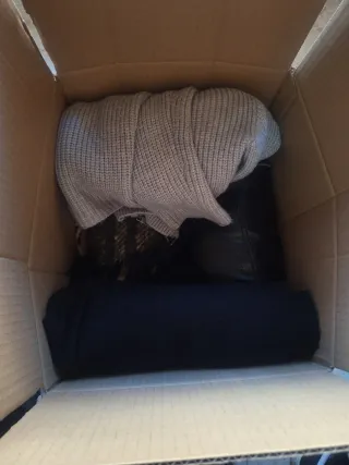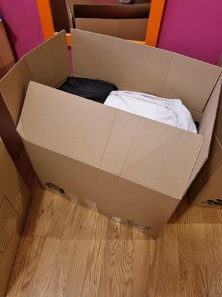 Se vende lote de ropa. - Caja de cartón color marrón.