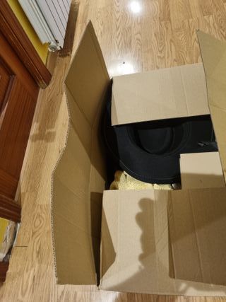 Descubre sorpresas en esta caja misteriosa de ropa para hombre. Contiene artículos variados. - Talla M (equivalente a 38-40 / 48-50). - Colores predominantes: negro y marrón.