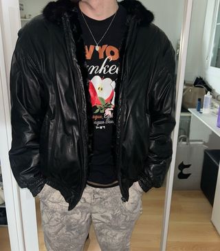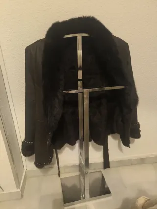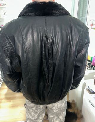Chaqueta de piel con un diseño reversible. - Material exterior de piel. - interior de pelo Es reversible y tiene pelo en el cuello por ambos lados ,es de muy buena calidad y muy abrigada . Queda tipo oversize o bomber . Talla para M y L Está como nueva , se ha usado muy pocas veces