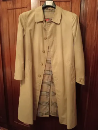 Clásica gabardina para hombre. - Diseño atemporal. - Forro interior a cuadros. - Cierre de botones. - Bolsillos frontales.