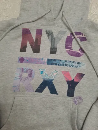 Sudadera con capucha de la marca Roxy. - Diseño frontal con estampado NYC y BROOKLYN. - Capucha con cordones ajustables. - Bolsillo tipo canguro en la parte delantera.