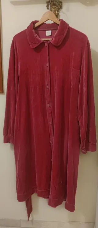 Bata larga de terciopelo para señora. - Cierre de botones. - Cuello camisero. - Cinturón. - Puños elásticos.