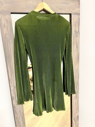 Vestido de manga larga con un diseño plisado. - Tejido con textura acanalada. - Mangas acampanadas. - Cuello redondo.