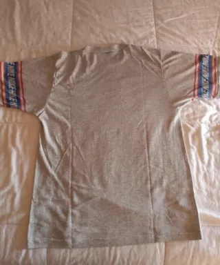 Camiseta vintage de la marca Nike con diseño de ColaCao y el Mundobasket España 86. - Color gris jaspeado. - Diseño gráfico de jirafas y rayas laterales. - Logo de Nike en las mangas.