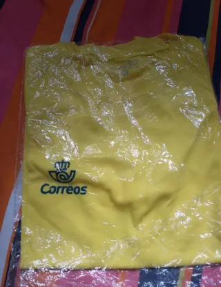 Camiseta con publicidad de Correos en color amarillo. Tejido técnico para correr y hacer deporte. Nueva a estrenar