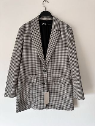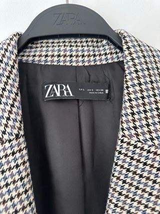 Elegante blazer de Zara con estampado de pata de gallo. - Diseño clásico. - Cierre de un botón. - Bolsillos frontales.