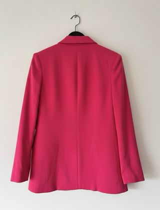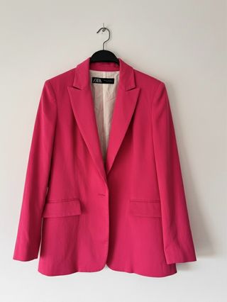 Elegante blazer de Zara en un vibrante color rosa fucsia. - Solapa clásica. - Cierre de un botón. - Dos bolsillos frontales. - Forro interior.
