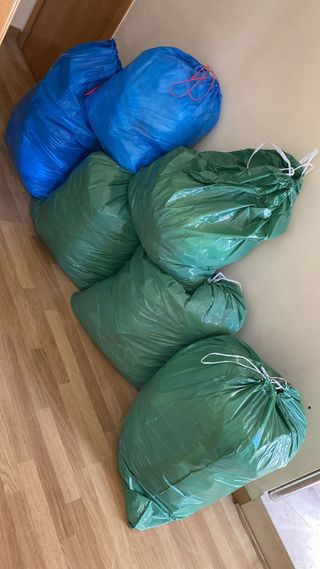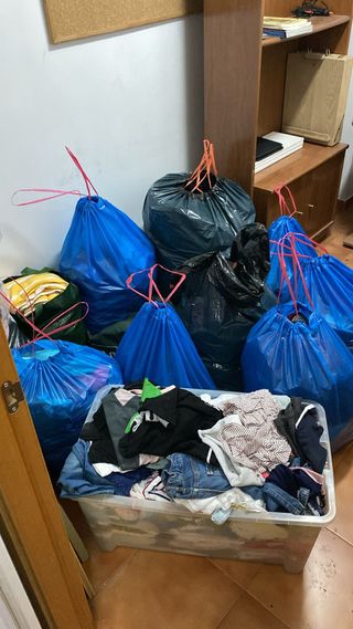 Conjunto de ropa variada, la mayoría de mujer y niñas, calzado, abrigos, disfraces, ropa de cama, cortinas. - Variedad de prendas textiles. - Si tienes tiempo y vendes suelto hay muchísima cantidad de cosas. Se recupera la inversión enseguida y se multiplica de todo lo que hay.