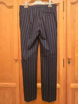 Pantalones de vestir con un diseño clásico de rayas verticales. Son cómodos y elegantes. - Diseño a rayas. - Corte recto.