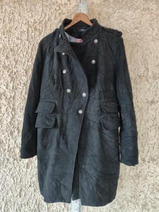 Abrigo largo de mujer de la marca Nicky. Le falta un boton - Diseño de doble botonadura. - Cuello alto con solapas. - Bolsillos frontales con solapa. - Hombreras decorativas.